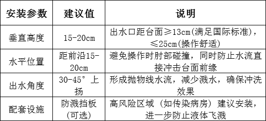 醫(yī)療機構通用洗手池設計:水龍頭出水口距臺面15-20cm為最佳,兼顧防濺與操作
